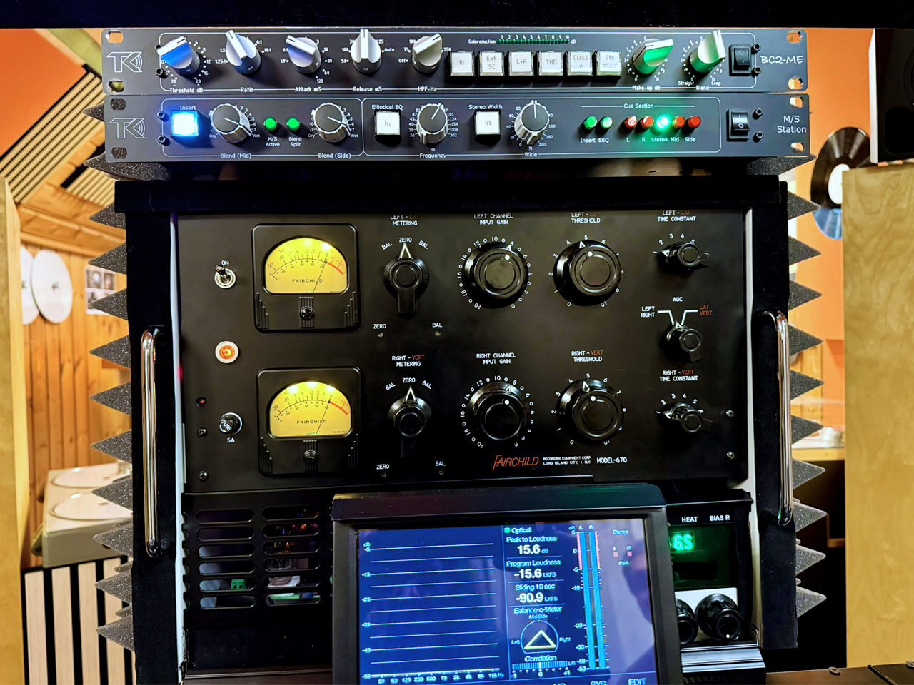 Nach der VTC-Stereosumme arbeitet, optimal an das Pult angepasst, der legendäre Fairchild 670 Summenkompressor, der speziell für Vinyl-Mastering in vielen Plattenstudios verwendet wurde.